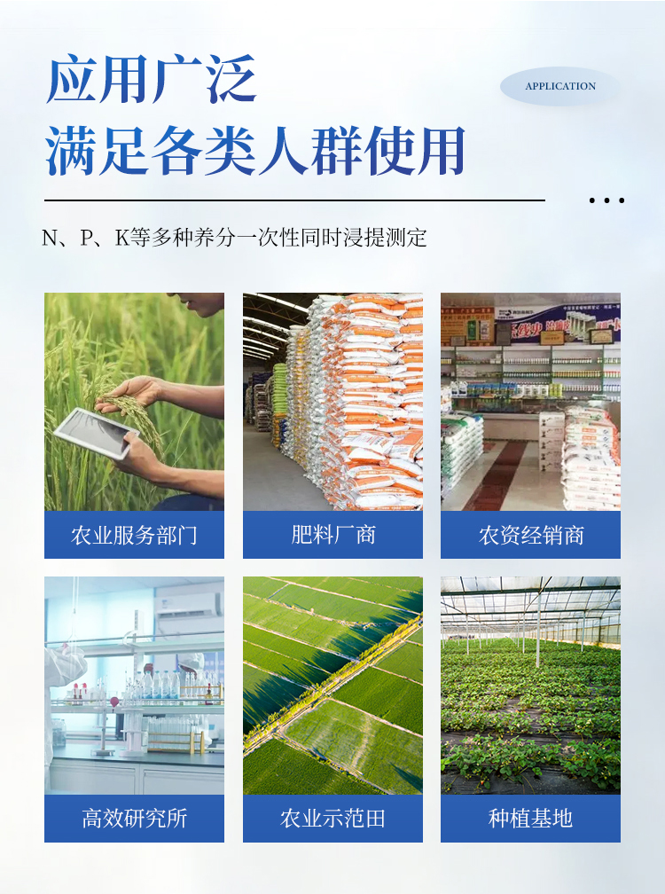 肥料中N、P、K等多种养分一次性同时浸提测定。