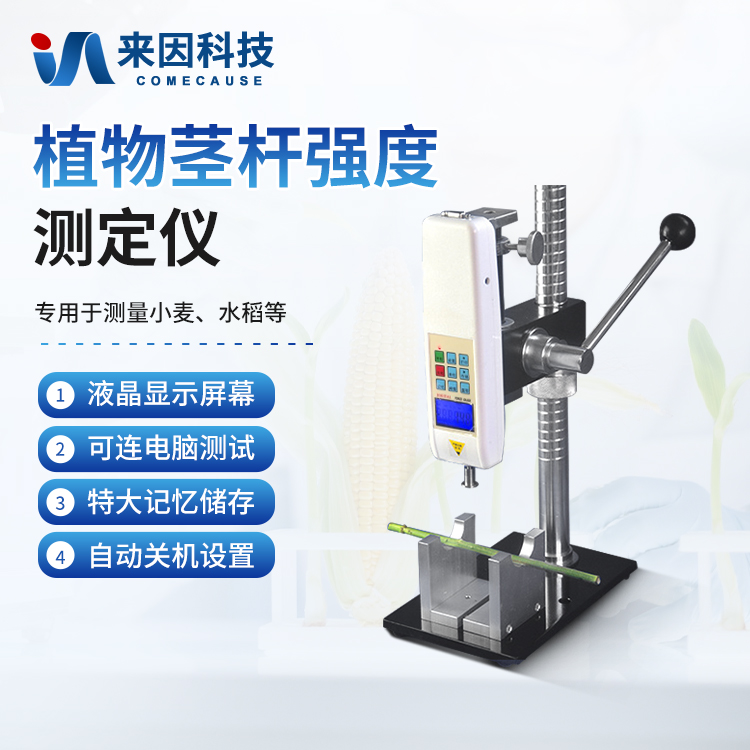 植物茎秆的强度是决定作物抗倒伏能力的一个主要因素,长期以来玉米,高梁、烟草等的倒伏给作物的机械收割造成很大的困难。从机械化水平来说,造成大量的粮食浪费。另外,作物倒伏导致光照不充分,使其生产量受到极大的限制。在作物生长的各个阶段对其茎秆进行活体测量,进而根据茎杆纤维层的抗弯阻力与抗倒伏能力的相关性对群体测量数据进行统计处理,对作物的栽培和育种具有重要意义。植物茎秆强度仪采用拉压力传感器,通过针刺、压碎、折断的方式测出茎秆断裂或者屈服瞬间产生的最大力,即茎秆的强度。