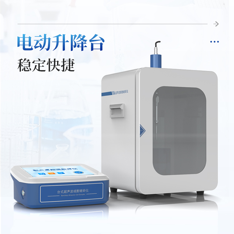 利用超声波在液体中的分散效应,使液体产生空化的作用,从而使液体中的固体颗粒或细胞组织破碎.超声波细胞粉碎机由超声波发生器和换能器二大部分组成。超声波发生器将市电转变成20-25KHz交变电能供给换能器。锆钛酸钡压电振子是换能器的心脏,它随交变电压以20-25KHz频率作伸缩弹性形变,换能器随之作纵向机械振动。振动波通过浸入在生物溶液中的钛合金变幅杆产生空化效应,激发介质里的生物微粒剧烈振动。