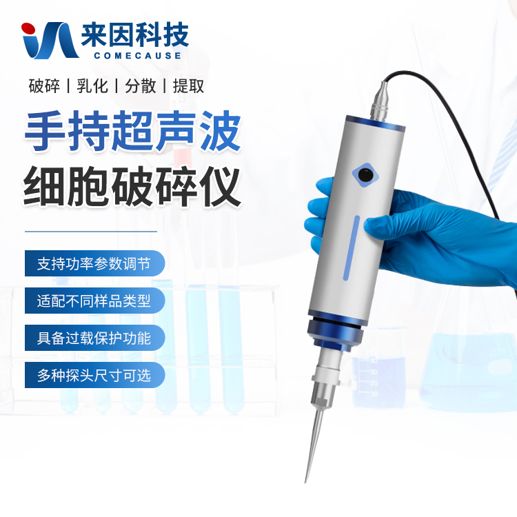 手持超声波细胞破碎仪是一种便携式、高精度的超声波处理设备,适用于实验室小规模样品破碎、乳化、分散和提取等操作。其一体化设计集成了超声波发生器和换能器,操作灵活,可手持使用或搭配支架固定,适用于生物、化学、材料等领域的高效样品处理。
