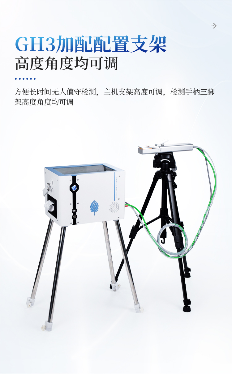 ★配置支架:方便长时间无人值守检测,主机支架高度可调,检测手柄三脚架高度角度均可调。